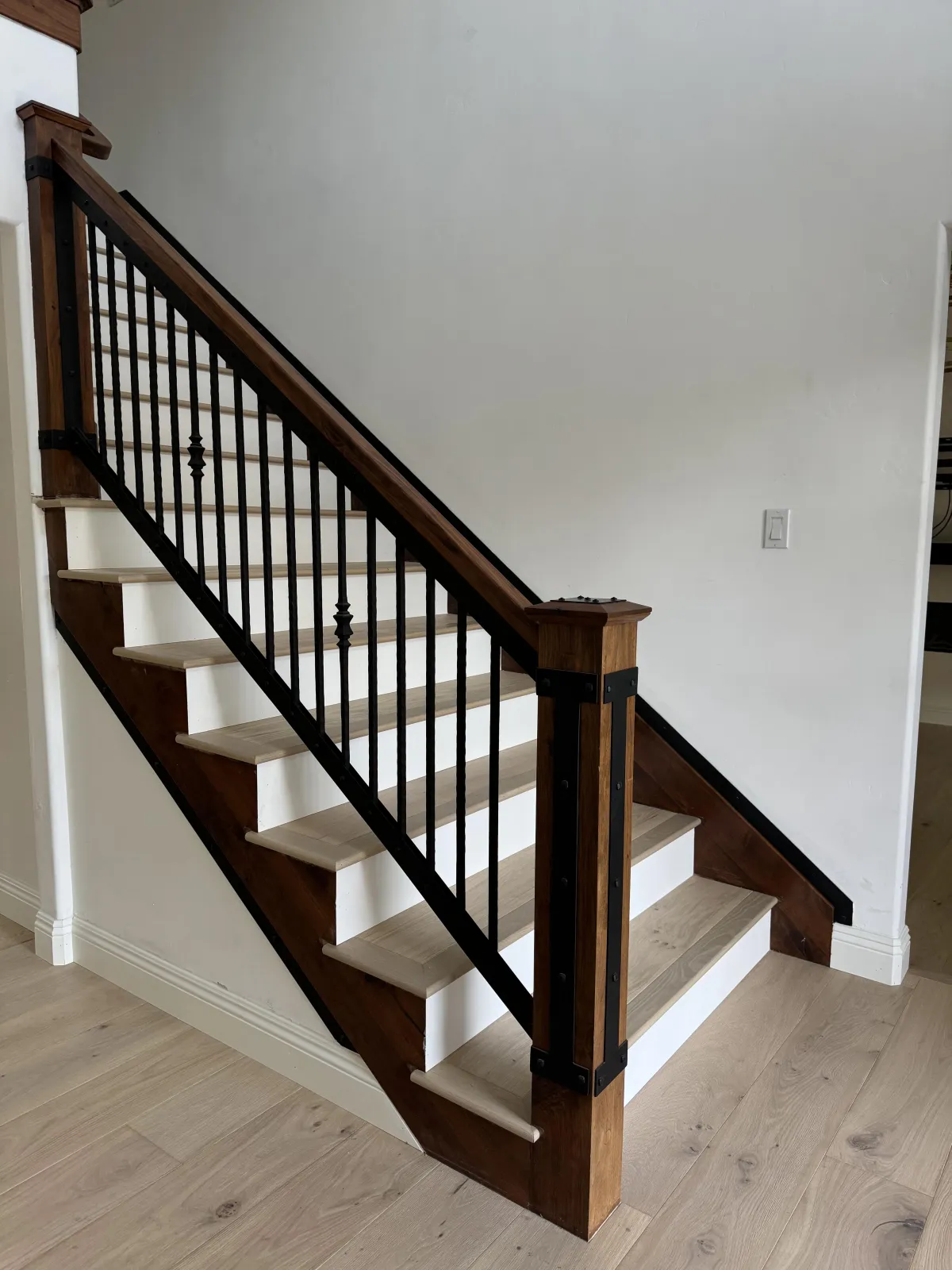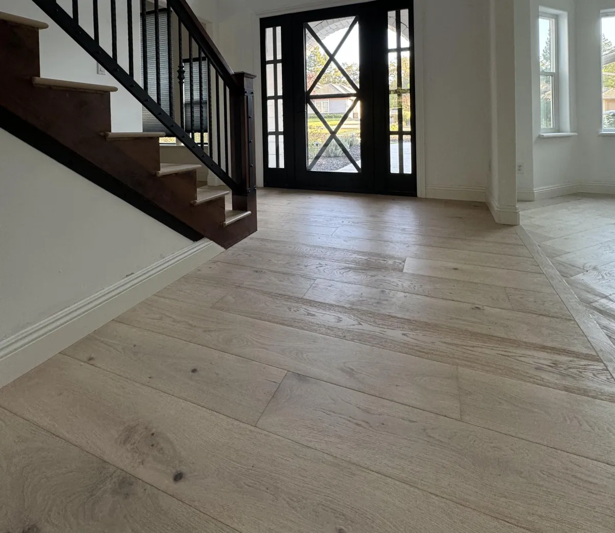 In addition to the flooring, we completed custom stair work to seamlessly match the hardwood floors. The stair treads were precisely fitted, with clean transitions, aligned nosing, and detailed finishes that complement the overall design and architecture of the home.