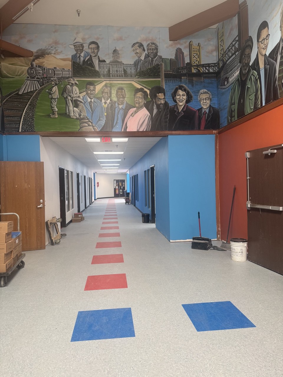 In addition to VCT flooring, laminate and tile flooring were installed in select areas to accommodate different functional needs within the space.