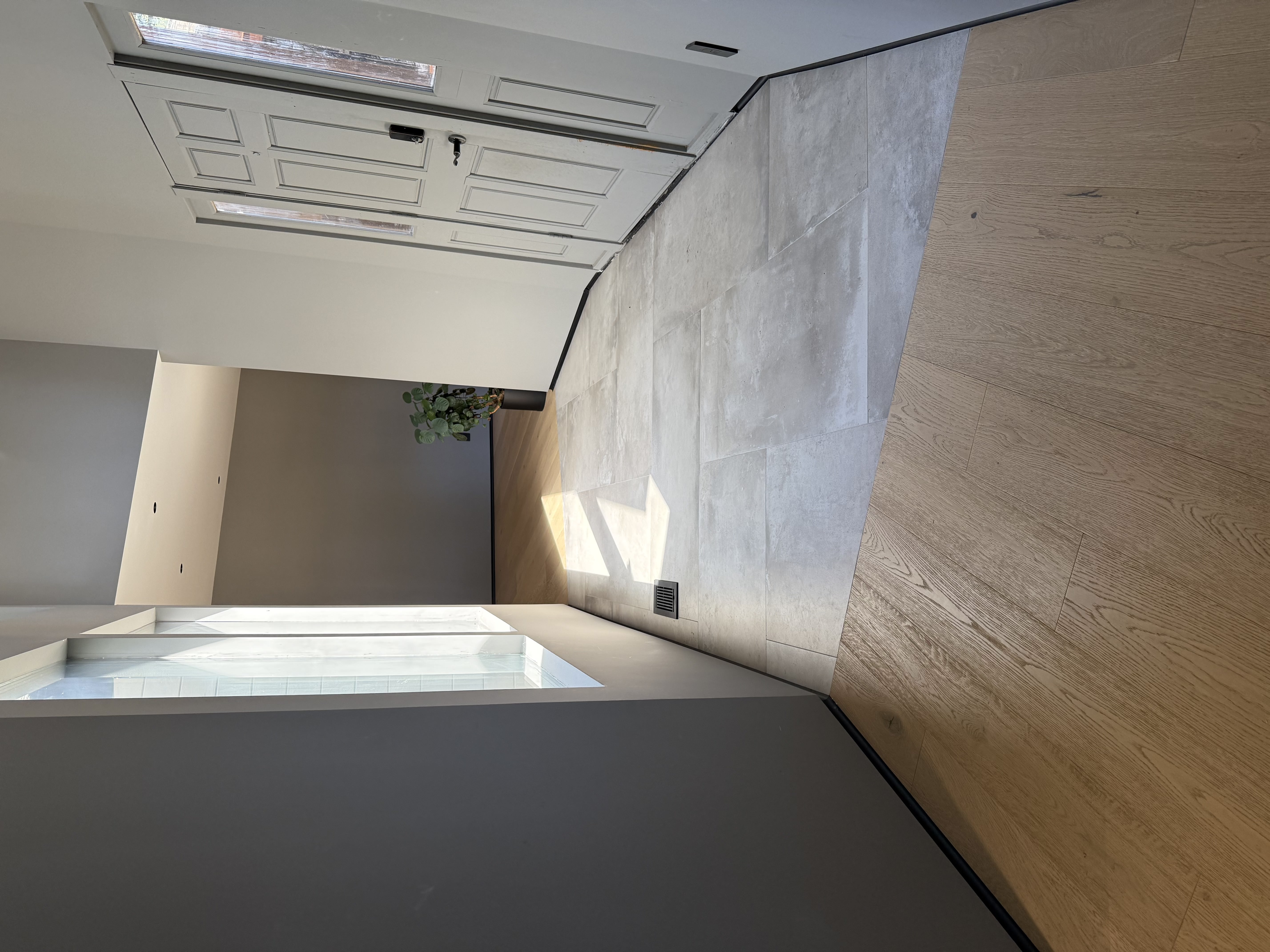 We also installed tile flooring at the entryway, carefully transitioning it into the hardwood to ensure durability, functionality, and a smooth visual connection between materials. In addition, small stair sections were finished to match the overall flooring design.