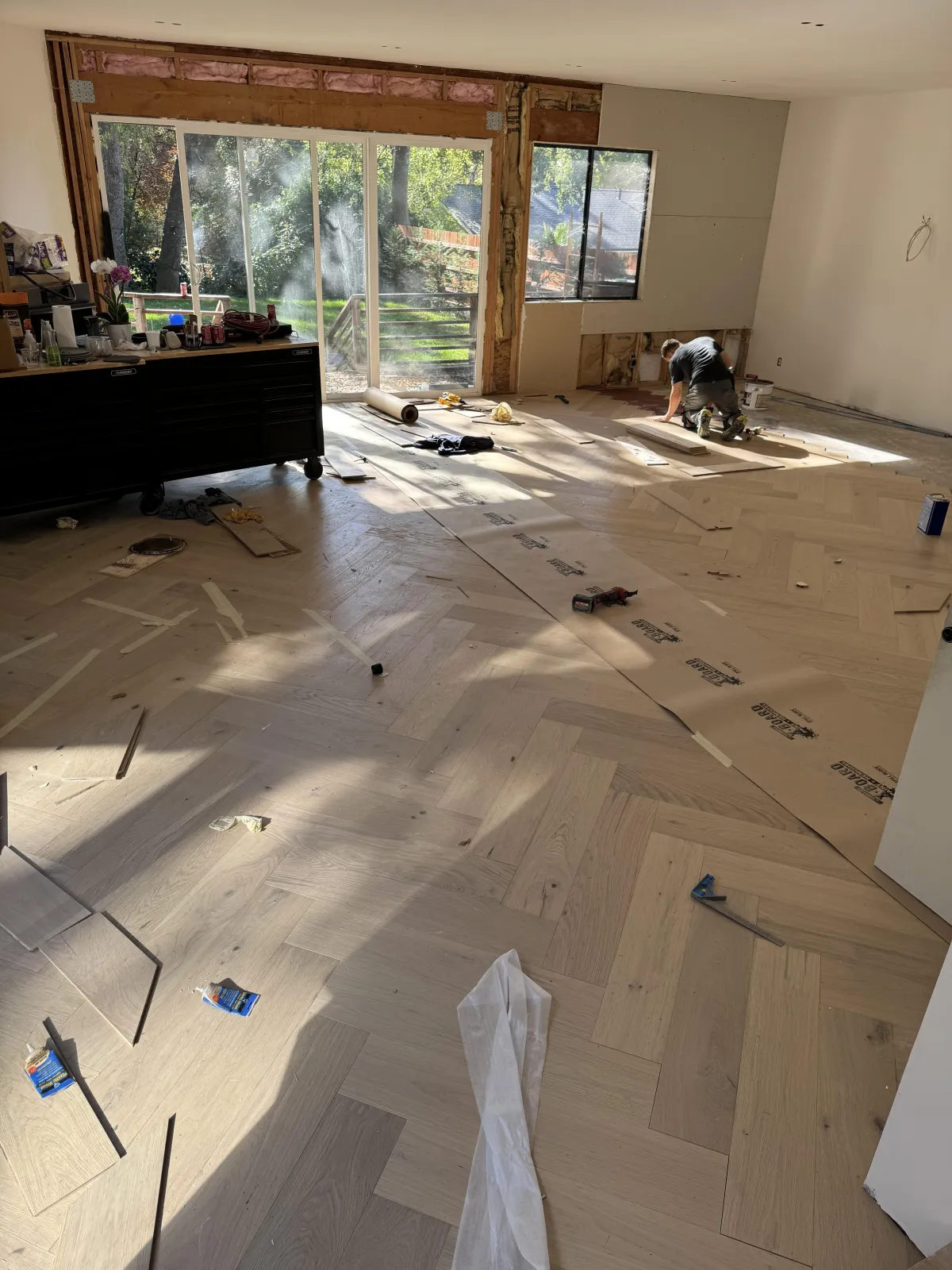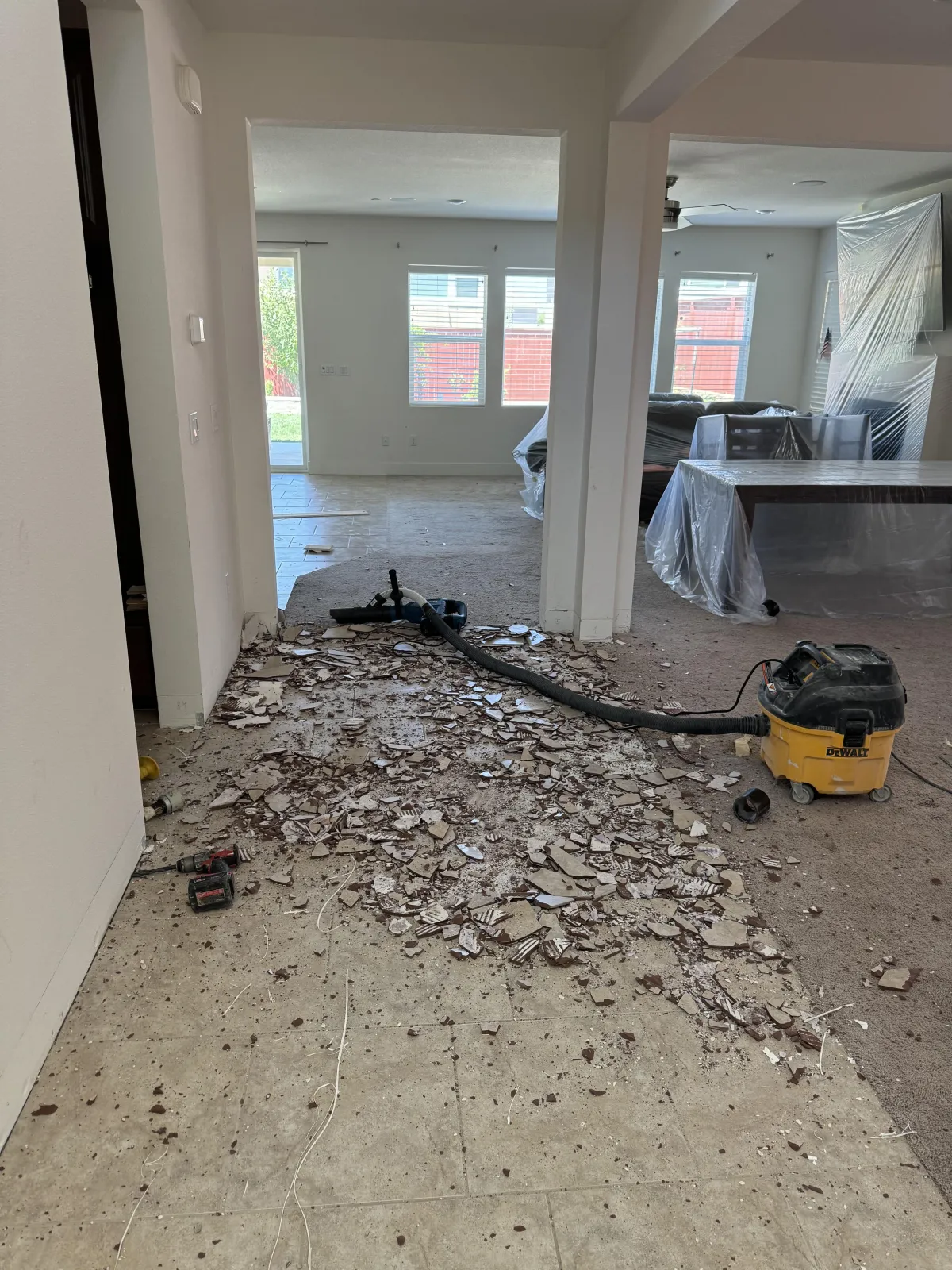 1. We carefully protect your entire space with plastic and coverings, and prepare the area before any work begins. This ensures your furniture, walls, and belongings stay safe from dust and debris during the installation process.